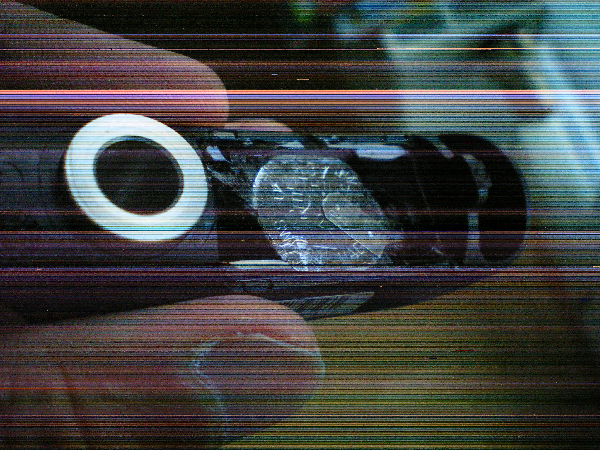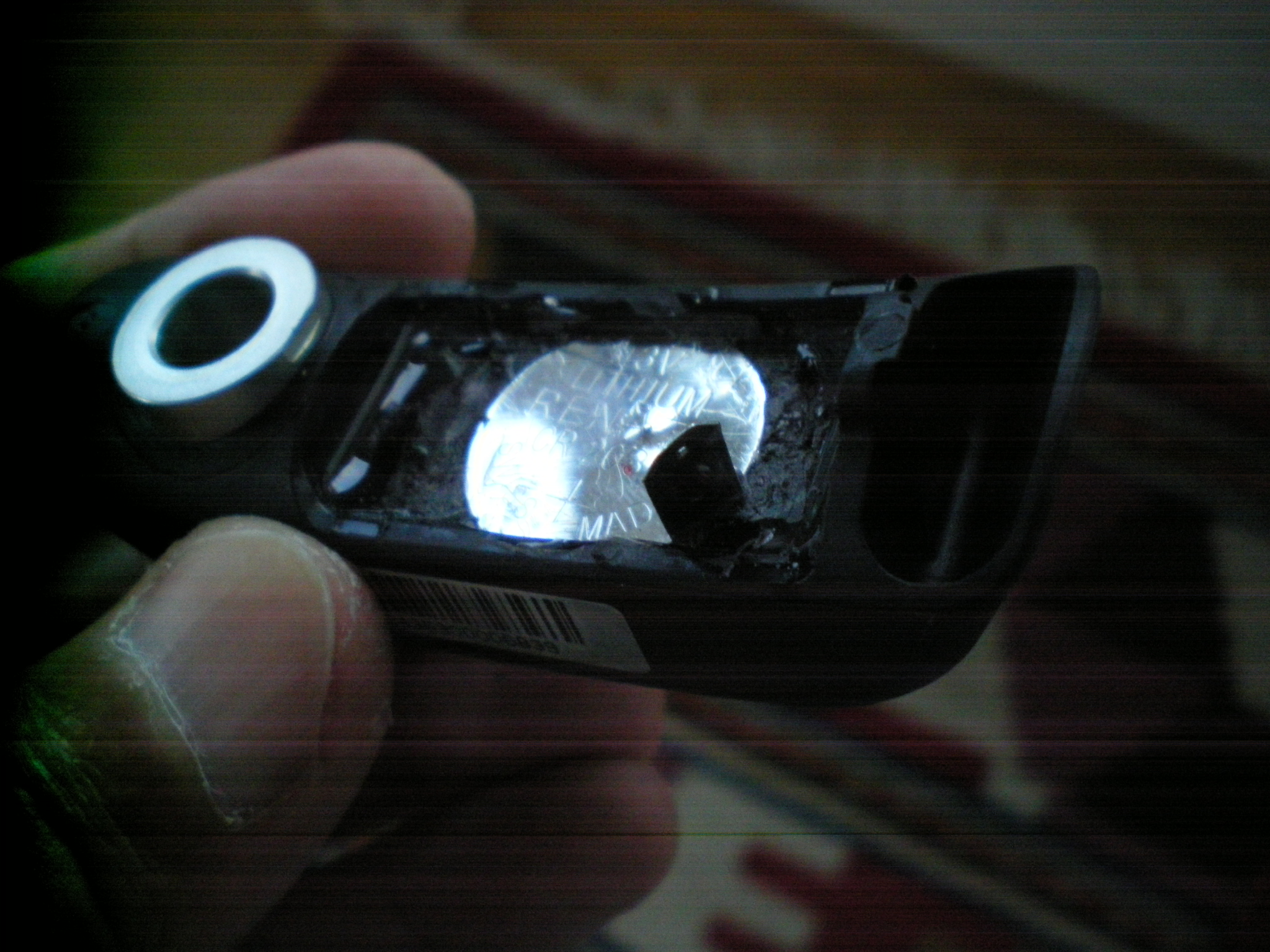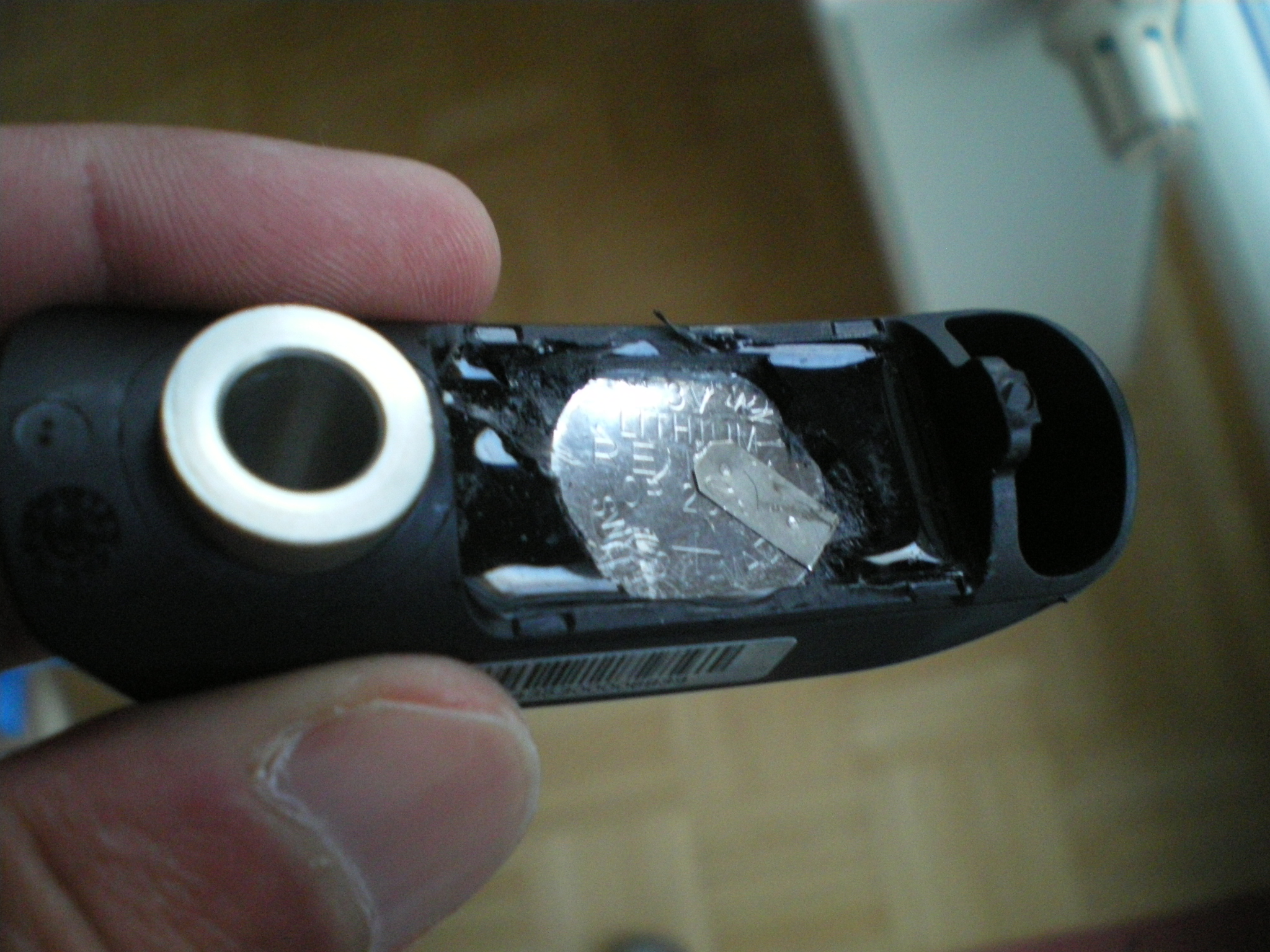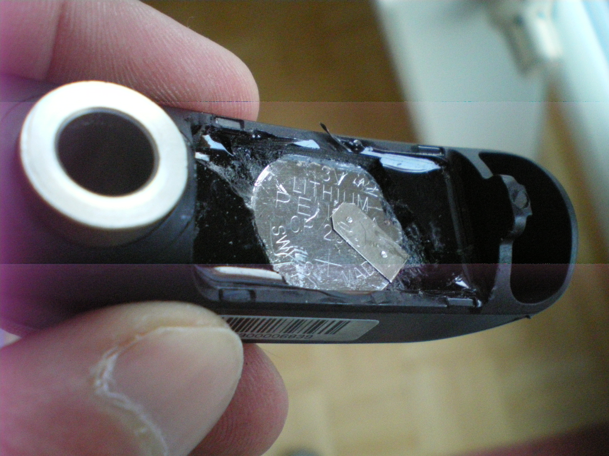 Da drin ist gleich etwa 1mm unterhalb des Vergusses die 3V Batterie.