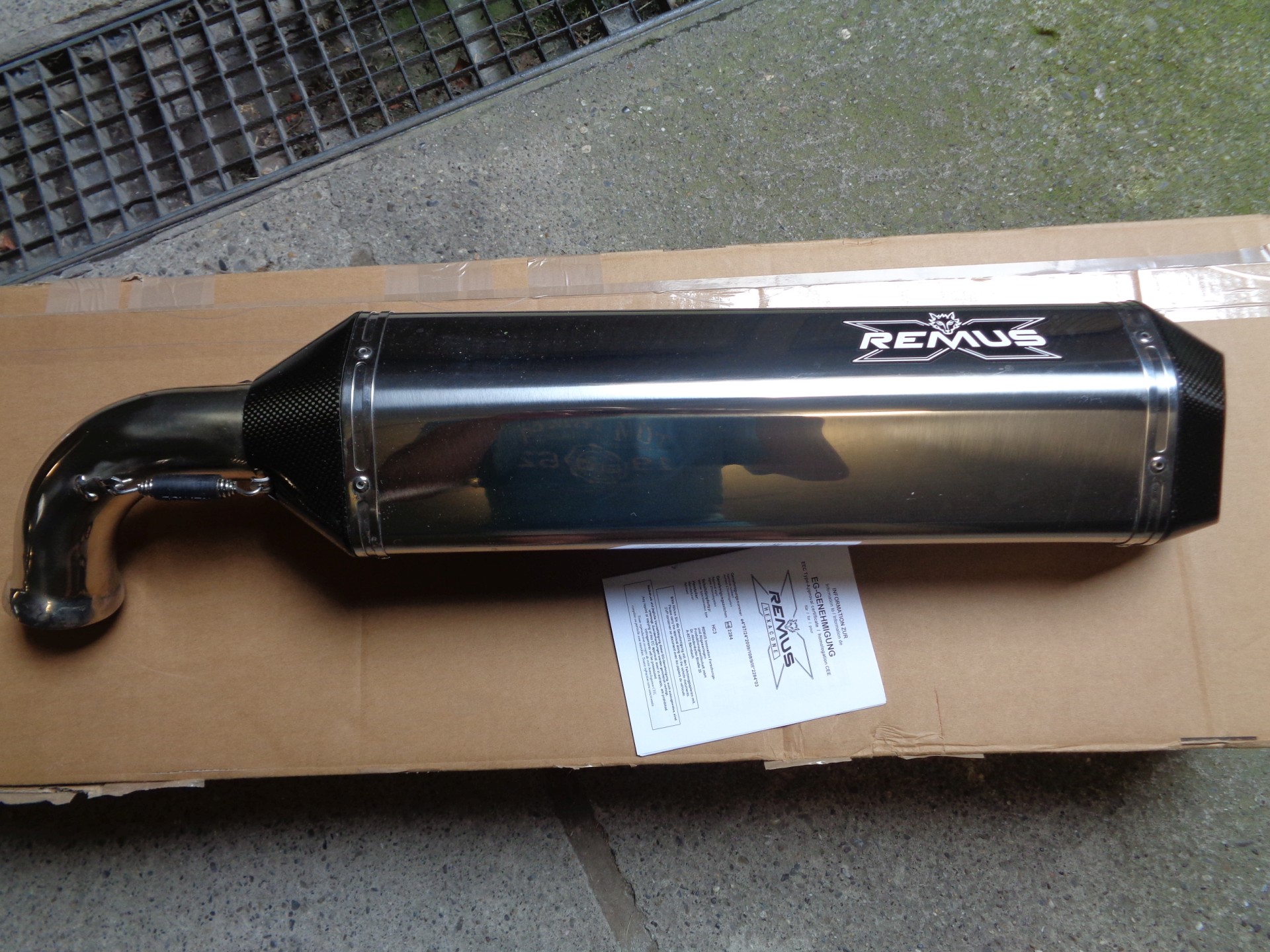 hätte noch einen Remus Hexacone Edelstahl mit Carbonkappen und Verbindungsrohr mit Kat - absolut neuwertig, war nur kurz probehalber montiert bislang, keine Gebrauchsspuren vorhanden ... Muss ich aber nochmals im Vergleich zum LeoVince antesten, Entscheidung noch offen.