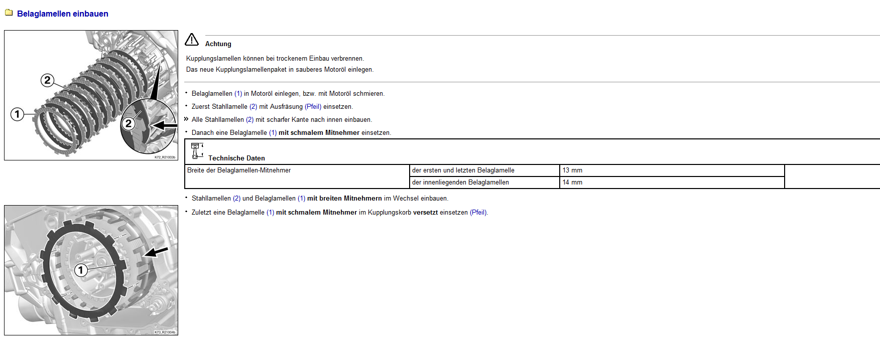Die Reihenfolge ist wichtig!!! Breite der Belaglamellenmitnehmer!!! unbeding beachten!
