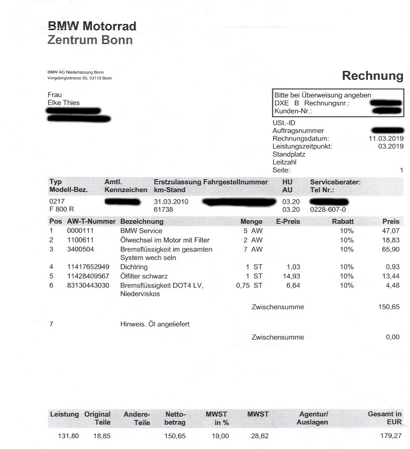 habe mal zum Vergleich unsere Rechnungen von BMW beigefügt.