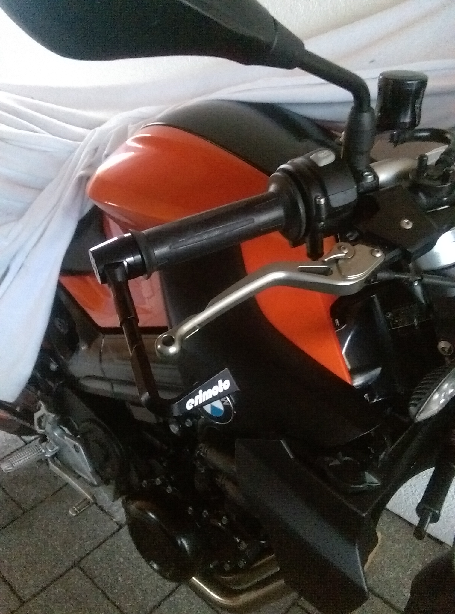Protektoren am Lenkerende wären da sinnvoller gewesen :roll: Beigeschliffen und schnell mal drüber lackiert und fast wie neu.