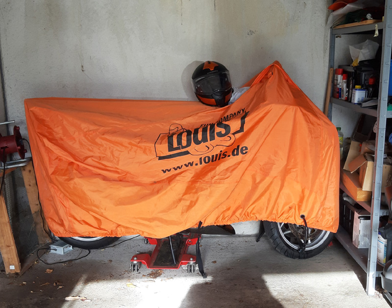 Also ich decke die Plane nur daheim drüber. Auf Reisen verzichte ich darauf. Folglich bleibt die Plane im näheren Umfeld der Wohnung. Da dort auch mein PKW steht, wird die Plane bei Motorradbenutzung in dessen Kofferraum gesteckt. Zumeist sind dafür kaum 20 Meter Distanz zu überwinden. Für mich taugt diese Variante seit Jahrzehnten.