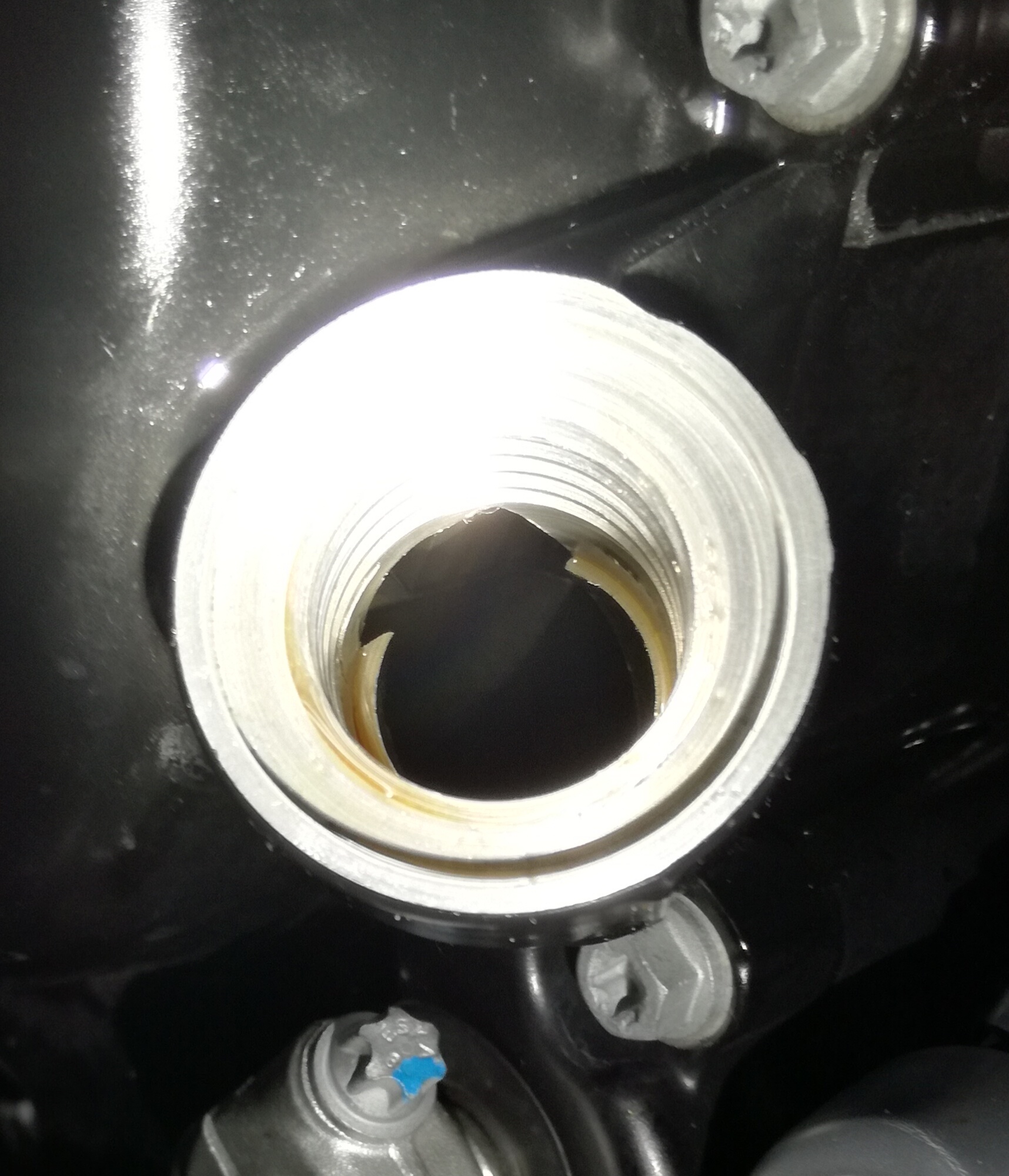 habe seit kurzem eine f800r von 2012. Am Öleinfülldeckel ist mir heute ein fehlendes Stück aufgefallen nach dem Gewinde oder gehört das so?