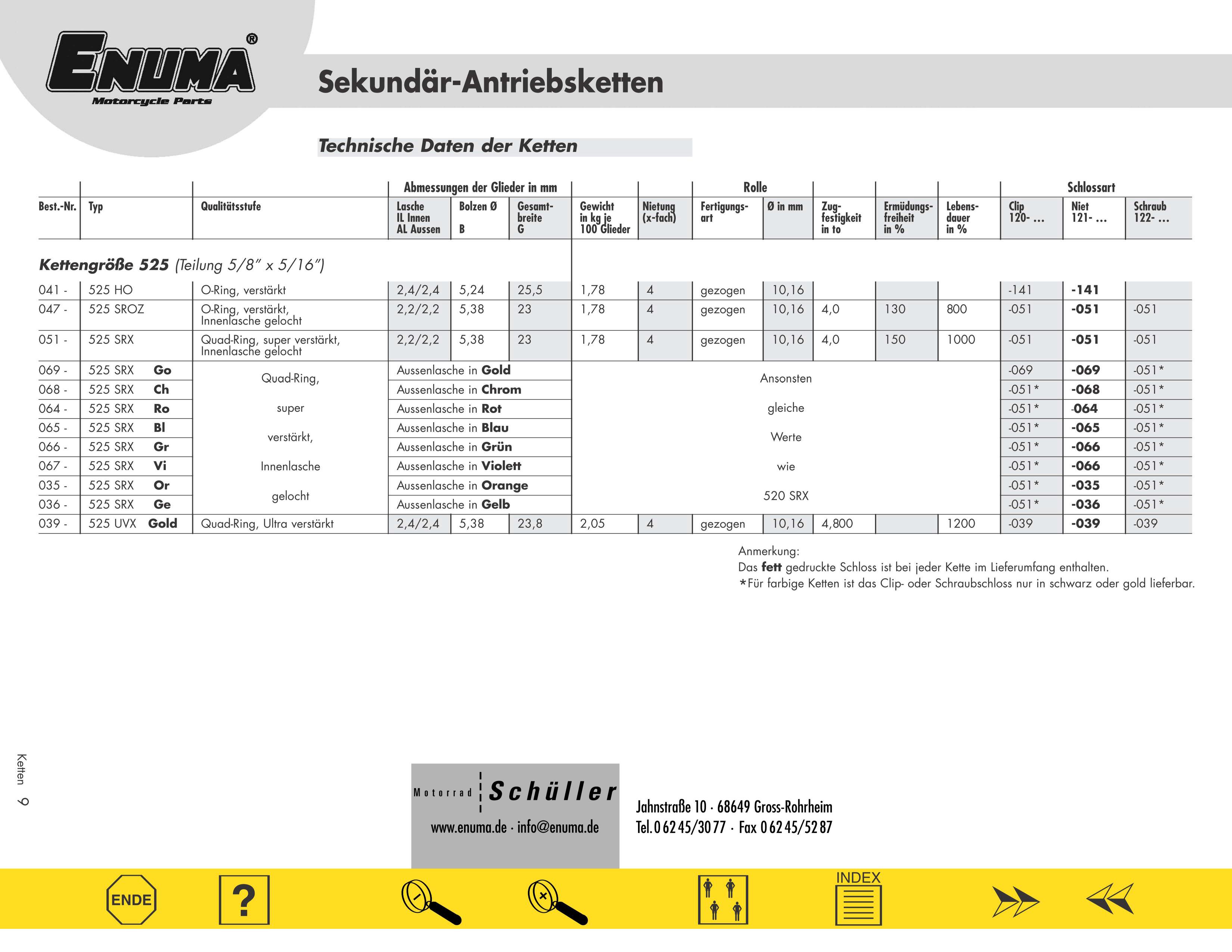 Wenn man also dennoch einmal die Zugfestigkeit als Merkmal für die Lebensdauer der jeweiligen Kette heranzieht, scheint sich zumindest die landläufige Verbrauchermeinung zu bestätigen, dass D.I.D.- und Enuma-Ketten zu den Top-Produkten zu zählen scheinen. Das scheint sich aber wiederum nicht zwingend mit einem (uralten) Test von Motorradketten zu decken, der 2007 von der Zeitschrift "Motorrad" durchgeführt wurde.