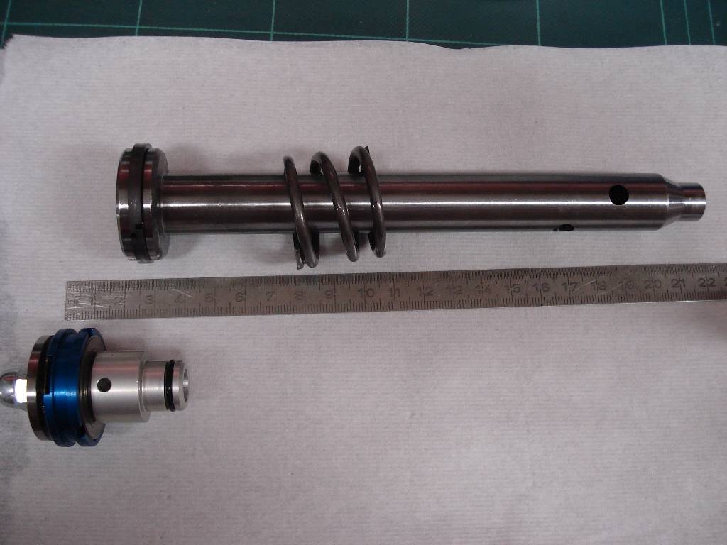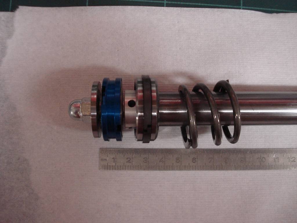 Luftkammer 130mm wie in der Anleitung. Das Öl ist mit 19cSt (20,04 cSt bei 40°C laut Datenblatt) relativ dünnflüssig und hat hochwertige Additive, die das Losbrechmoment verringern und das Ansprechverhalten positiv beeinflussen. Die Emulatoren haben Shimpakete, die auf die F800 abgestimmt sind. Eine Einstellung ist nicht möglich, aber auch nicht notwendig. Damit wird eine gute Funktion in Zug- und Druckstufe erreicht, ohne unkomfortabel zu sein. Die org. Gabel hat nur nur den Einsatz mit den Querbohrungen unten, siehe Bilder im letzten Posting, wo das Öl durchfliesst, also keine "echte" Dämpfung ...