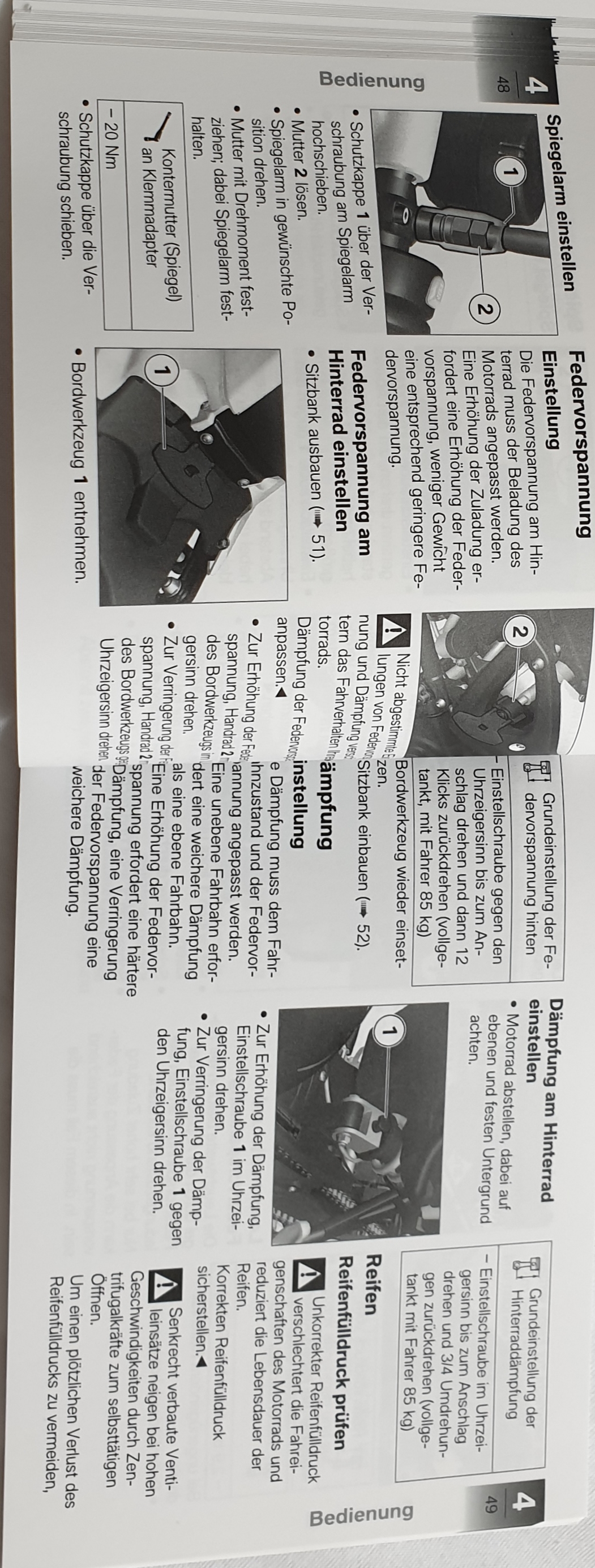 Andererseits scheint BMW ohnehin Probleme zu haben, die Einstellvorgaben für's Fahrwerk klar auszudrücken. Bei der NineT habe ich bei BMW interveniert und prompt wurde dann das Manual dahingehend geändert.