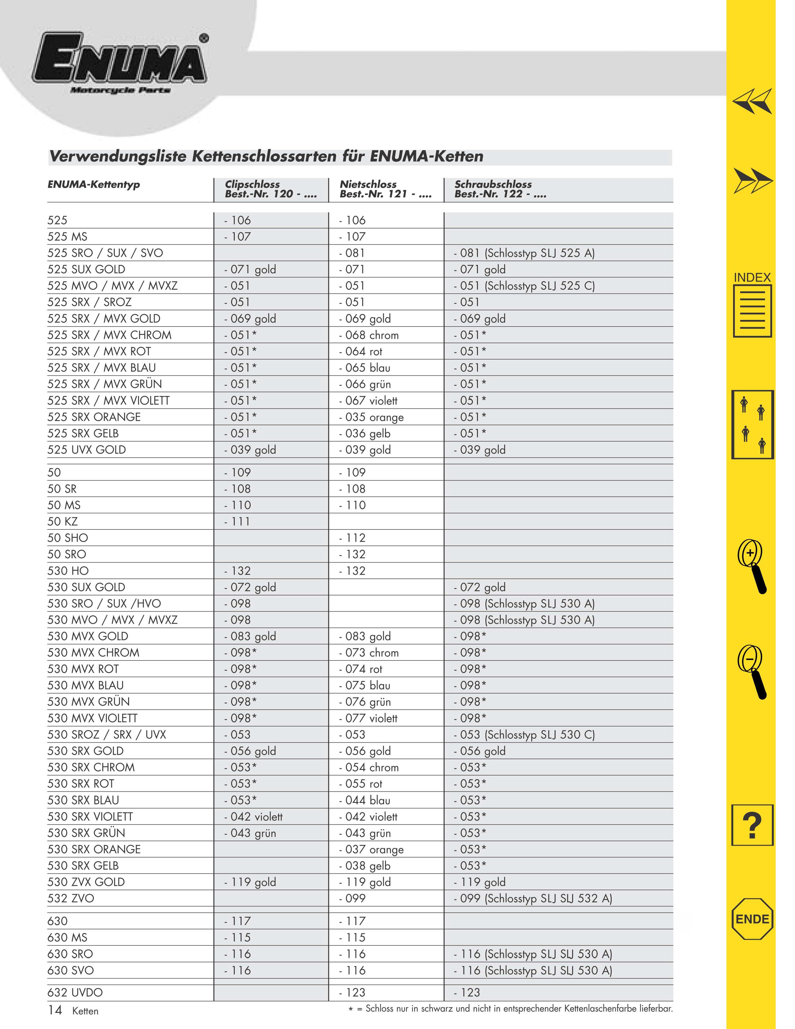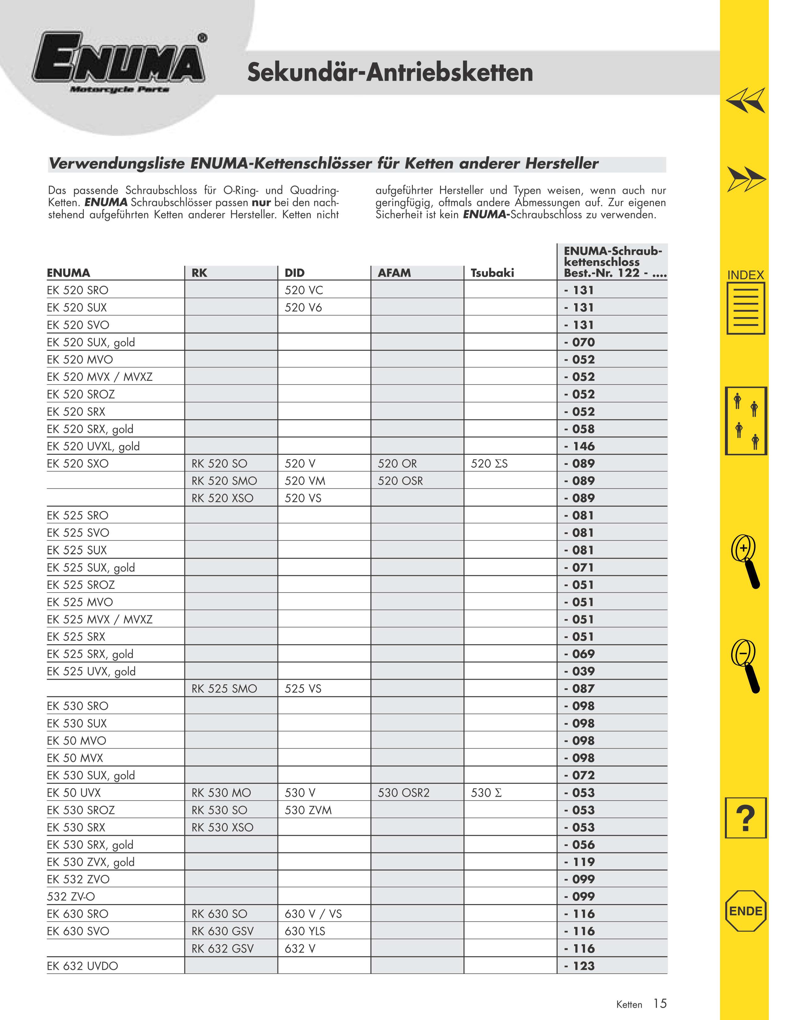 Also im 2 Blatt sind Enuma-Kettenschlösser für Fremdfabrikate aufgeführt. Guck mal genau hin