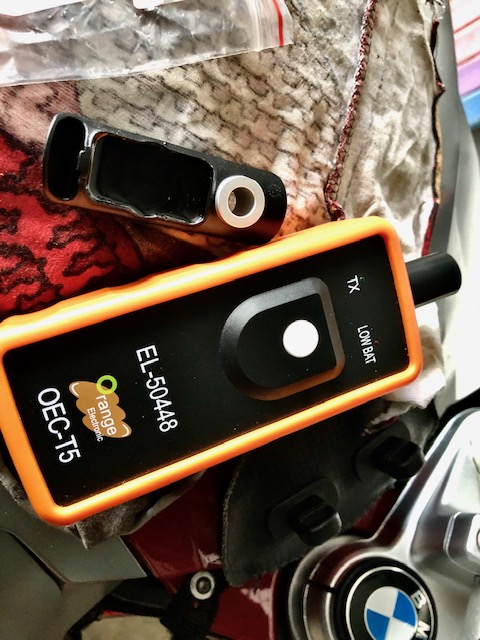 Und das Foto von dem aufgewecktem Sensor in der Anzeige im Cockpit. 0,0bar rechts ist das Hinterrad.