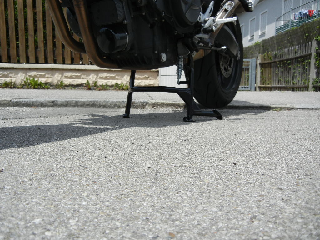 So, vielleicht sagen jetzt einige von euch, dass war doch klar. alle anderen wollte ich aber an meiner freude teilhaben lassen und denen den stress und die kosten ersparen. jetzt habe ich für weniger als 100 € einen angebauten hauptständer. der stand ist meines erachtens gut (kein vergleich mit der wackligen angelegenheit vorher bei meienr szui sv650s edition). auch das auf- und abbocken geht echt super. alles in allem der egstrige tag doch noch gerettet :D .