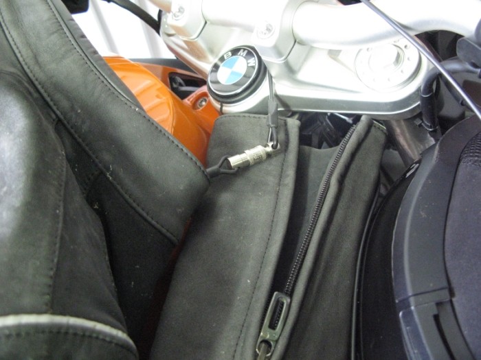 Einmal als kleines Schloss für meine Motorradtasche direkt an den Reißverschluss. Einfach zusammen klicken und zu ist die Tasche.