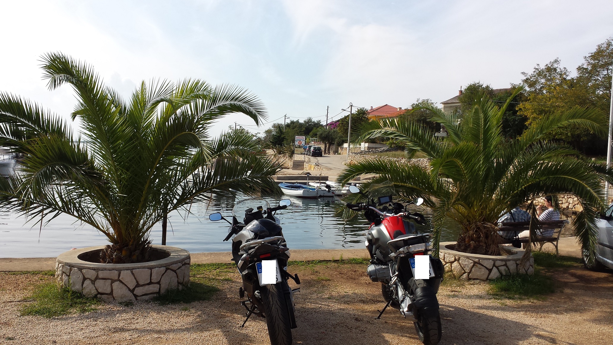 Ein weiterer Tag Pause, dann eine kleine Tour zur Insel Pag unternommen. Wie fast überall in Kroatien gut ausgebaute Straßen, schöne und entspannte Kurven und natürlich eine nette Aussicht. Am nördlichen Ende der Insel gab es dann in Lun eine kleine Stärkung unter Palmen mit Blick aufs Meer und es ging wieder zurück zum Basislager.