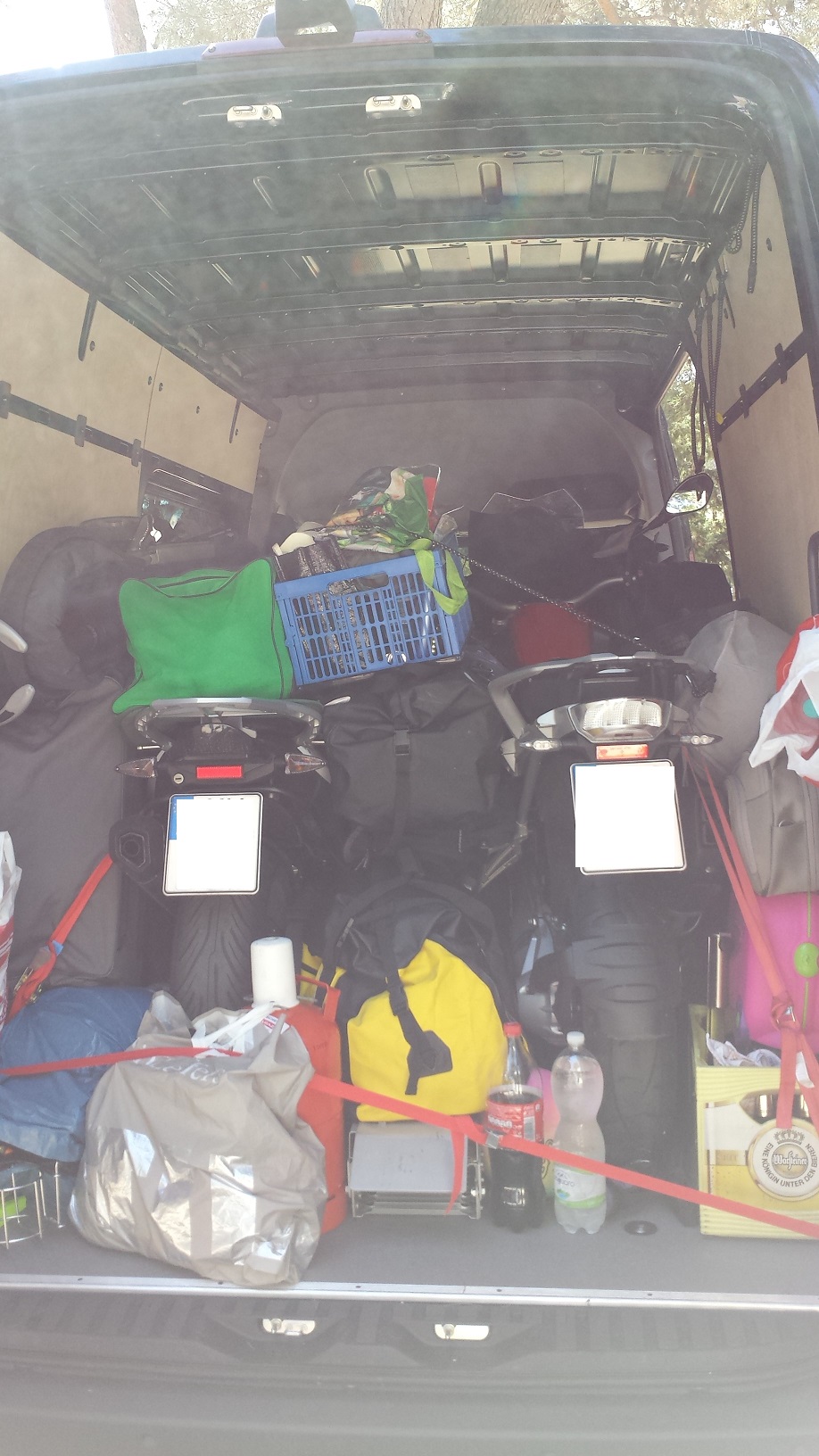 Aus Rücksicht auf meine Nichte (2 Jahre) sind die Mädels dann geflogen und wir haben kurzerhand die Motorräder in 'nem Sprinter verstaut. Im Nachhinein eine gute Entscheidung, von 14 Stunden Fahrzeit hatten wir ca. 13,5 Stunden Dauerregen. Kurz vor unserem Ziel kam dann aber die Sonne raus.
