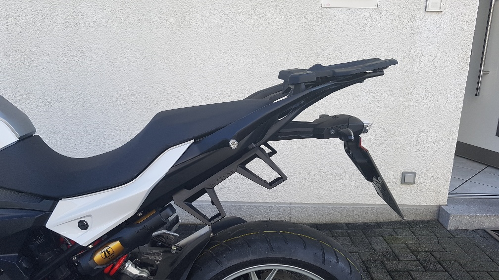 Nun denn - die immer gescholtene Pizzaboten -Gepäckbrücke der F800 ist zumindest dagegen richtig hübsch und bestens ins Motorrad integriert... :mrgreen: