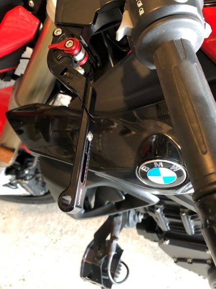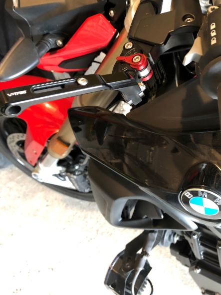 …und für meine F800R habe ich mir klappbare, 5-fach einstellbare V-Trec-Hebel gegönnt, die auch in der Länge einstellbar sind: