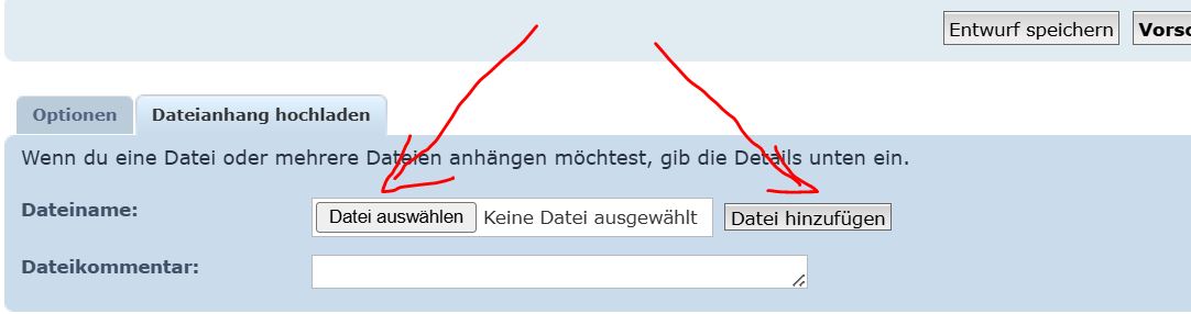 "Dateianhang hochladen" wählen, Bild heraussuchen und hochladen. Dann steht das Bild unter