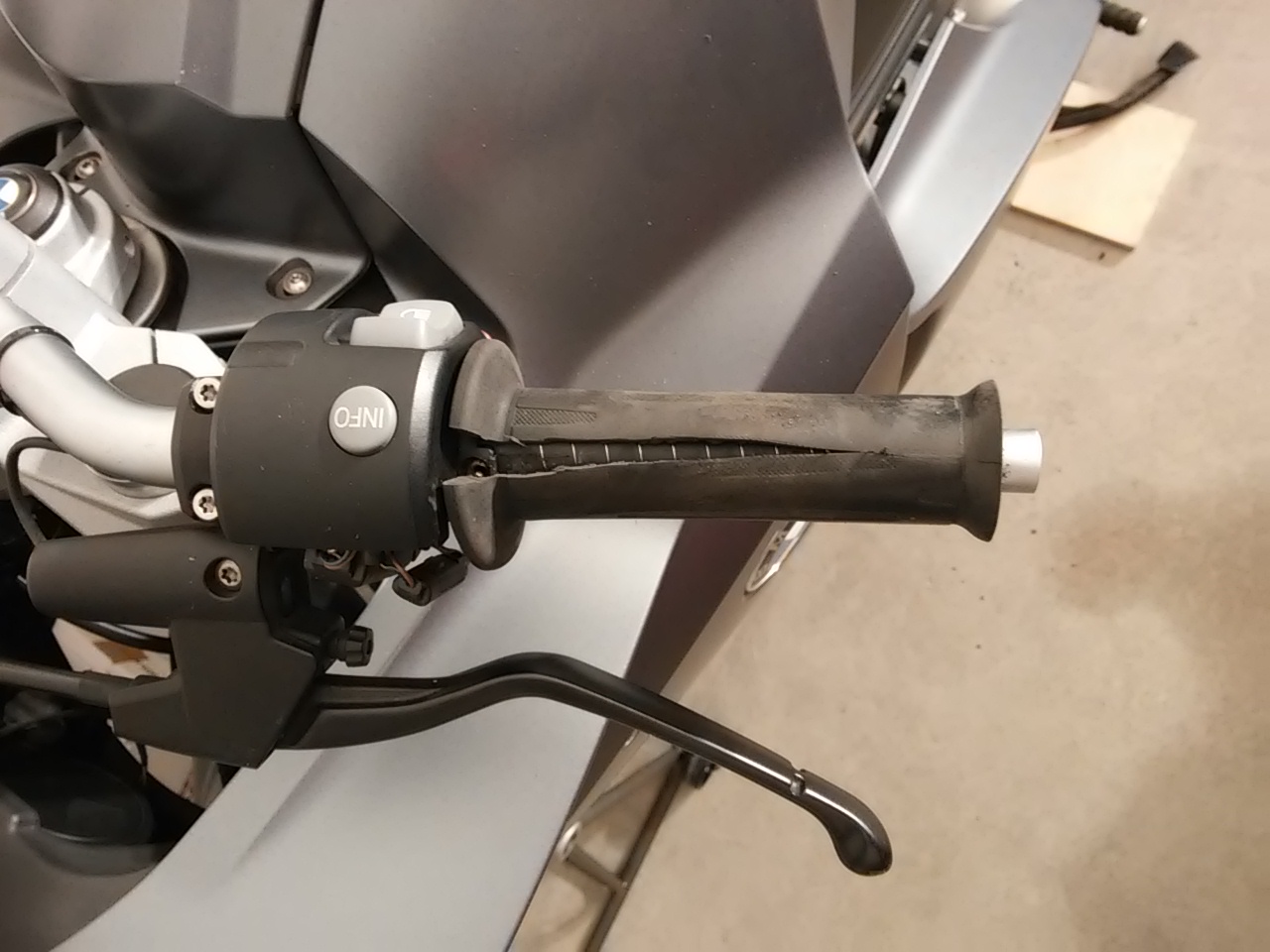 Der rechte Griff (Gasgriff) angeschnitten