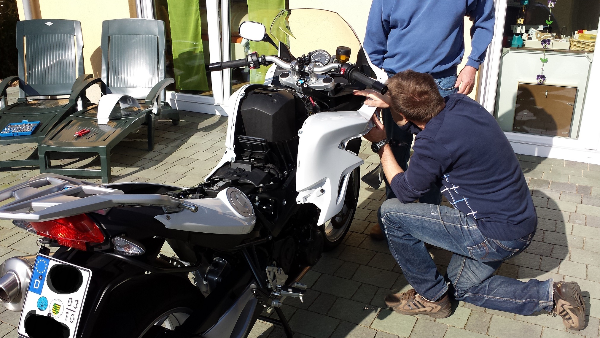 ich muß nach Unfall die linke Verkleidung zwischen Sitz und Lampe ersetzen. Ich habe alle sichtbaren Schrauben gelöst, komme aber nicht weiter. Irgendwo im vorderen oberen Bereich ist noch etwa fest. Das schwarze Zwischenstück mit dem BMW Zeichen läßt sich mitbewegen, aber ist noch fest. Dann habe ich das untere Seitenteil abgeschraubt, neues Problem: das Blinkerkabel verhindert, dass ich es abnehmen kann - finde keinen Stecker, landet in einem Kabelbaum. Gibt es im Netz eine bebilderte Anleitung für diese Arbeit oder kann es jemand beschreiben?