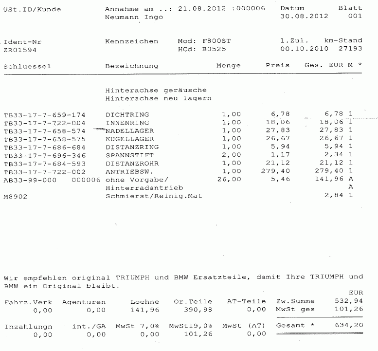 Tobias1982 hat geschrieben:...Ich gebe euch schon Recht dass so ein Fehler ärgerlich ist. Aber ihr fahrt nicht zur Wartung und gebt soweit nichts mehr...