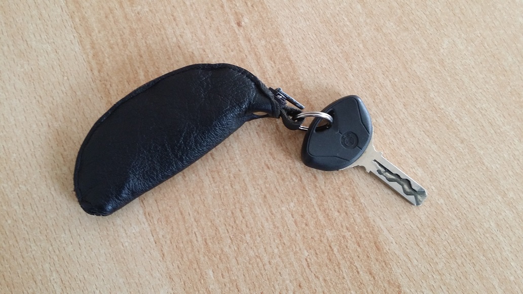Um eben dieses Prinzip weiter zu verfolgen, habe ich den Schlüssel an meinem Motorradschlüssel befestigt. Denn nur dann habe ich auch den Schlüssel bei jeder Fahrt mit dabei. Dumm nur, dass er jetzt hat ganz ungeschützt da rumbaumelt. Will mir ja nicht alles verkratzen.