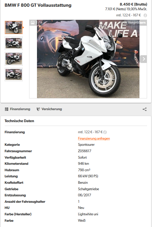 (Werksmaschine von BMW, kostet 2/3 vom Neupreis, ggü. einer neuen evtl. F850GT ein Haufen Geld gespart :D )