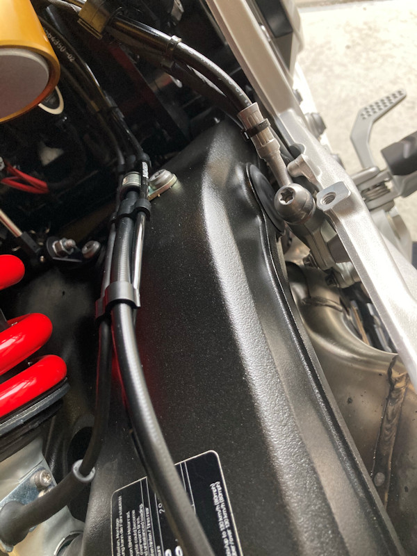 Bezüglich dem Bremslichtschalter, da habe ich den Metallauslöser leicht verbogen, so dass er nicht bei jedem Windstoss anspringt. Aber natürlich immer noch so, dass die Leuchte brennt, bevor die eigentliche Bremswirkung einsetzt.