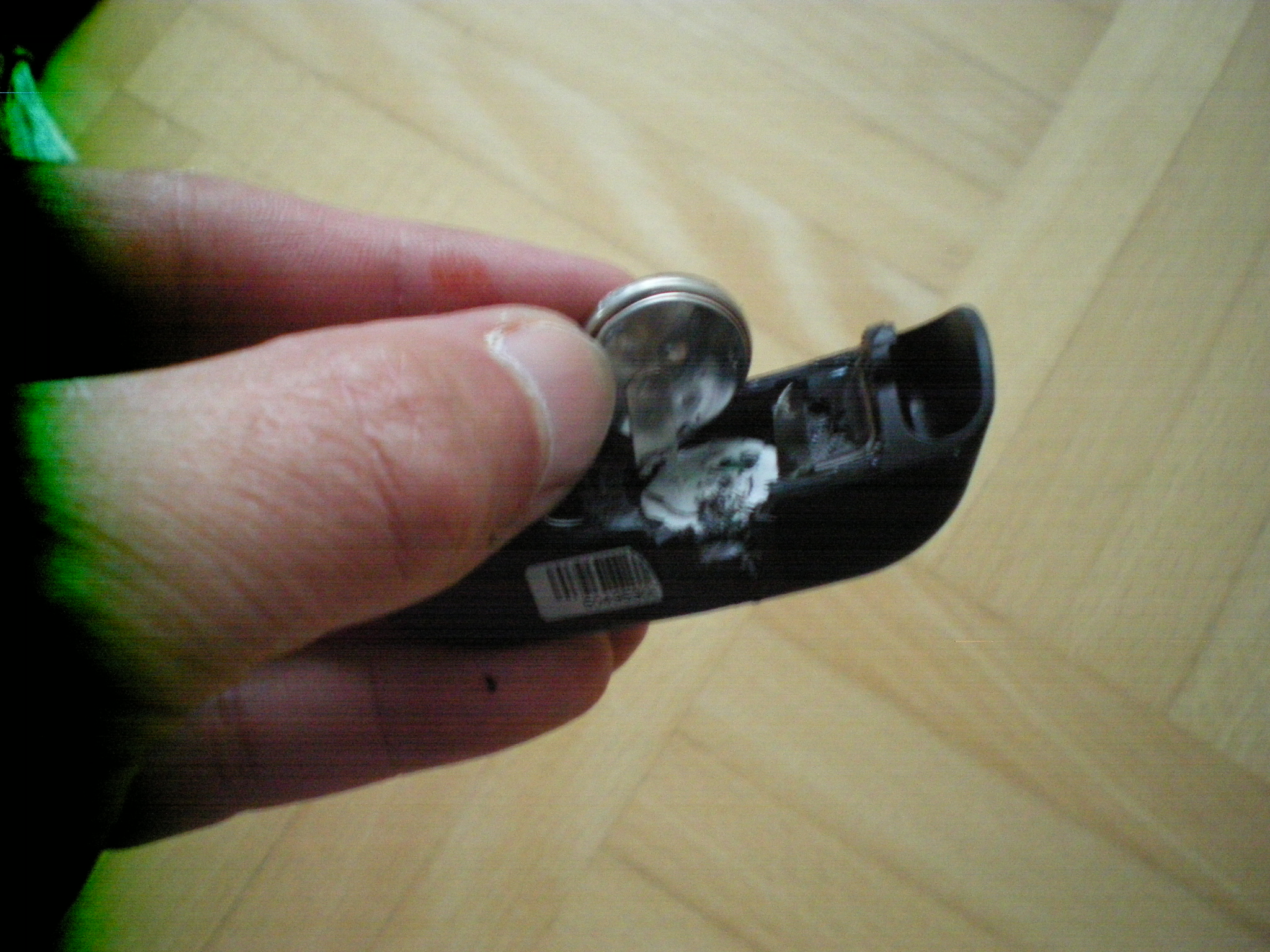 Da drin ist gleich etwa 1mm unterhalb des Vergusses die 3V Batterie.
