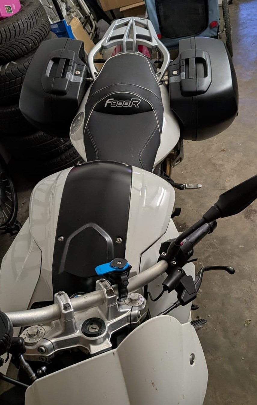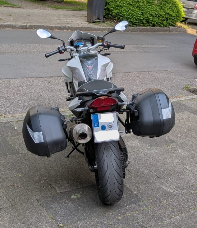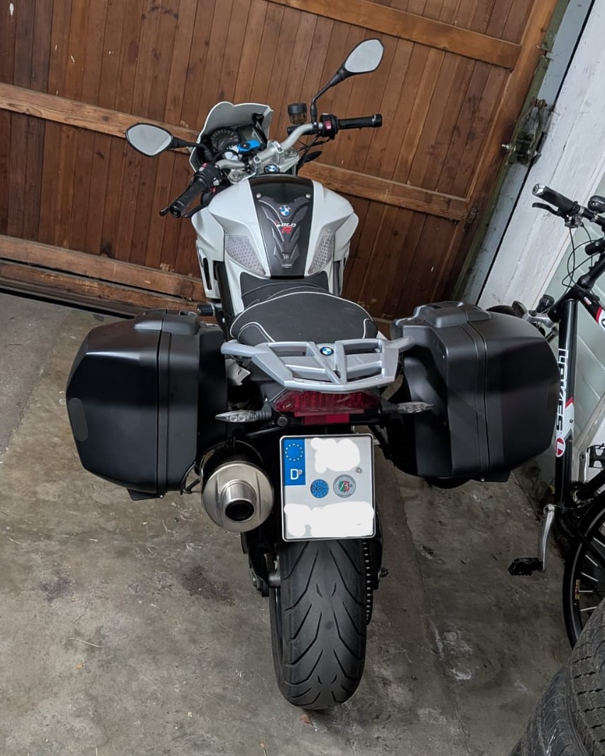 Endlich ein Koffersystem, wie ich es haben will, montiert. Hätte ich das vorher gewusst, hätte ich beim Gebrauchtkauf direkt eine Maschine mit BMW Koffern gekauft, aber das war eher ein Entwicklungsprozess, bis ich wusste, dass ich ein Nutzungsprofil habe, das eine abschließbare Staumöglichkeit braucht. Topcase kam nicht in Frage, also Koffer.
