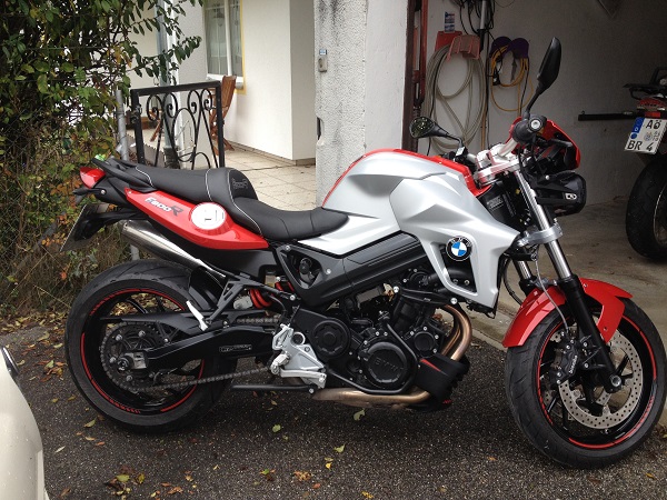 anbei 3 Bilder meiner nur sehr leicht modifizierten F 800 R. Die lackierten Kunststoffteile
