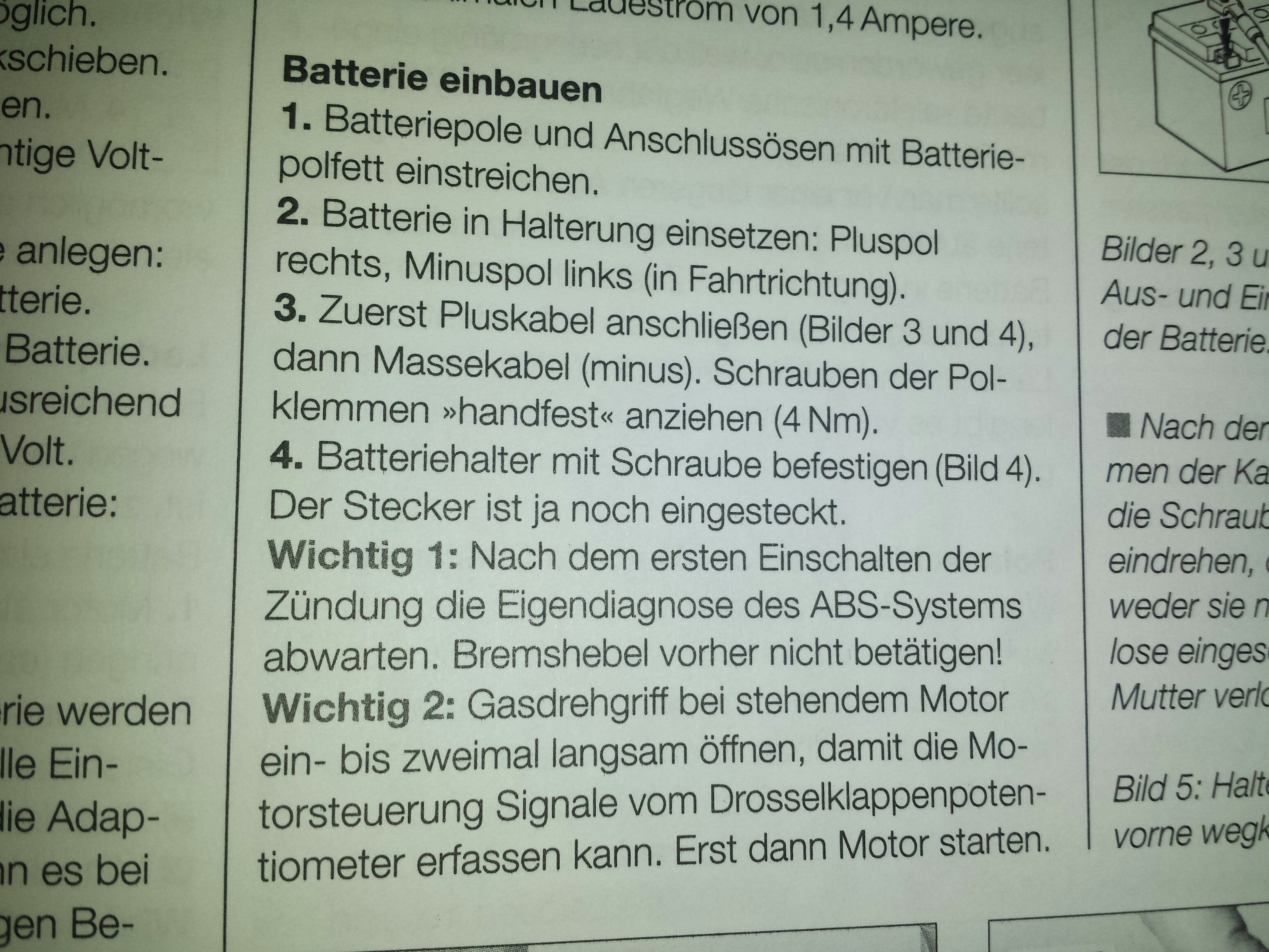 wundert mich auch. Ich hab das nicht gemacht, sondern einfach die Batterie ganz normal eingebaut und danach den Motor ganz normal gestartet. Ich hatte damit keine Probleme. Komisch, das. scratch