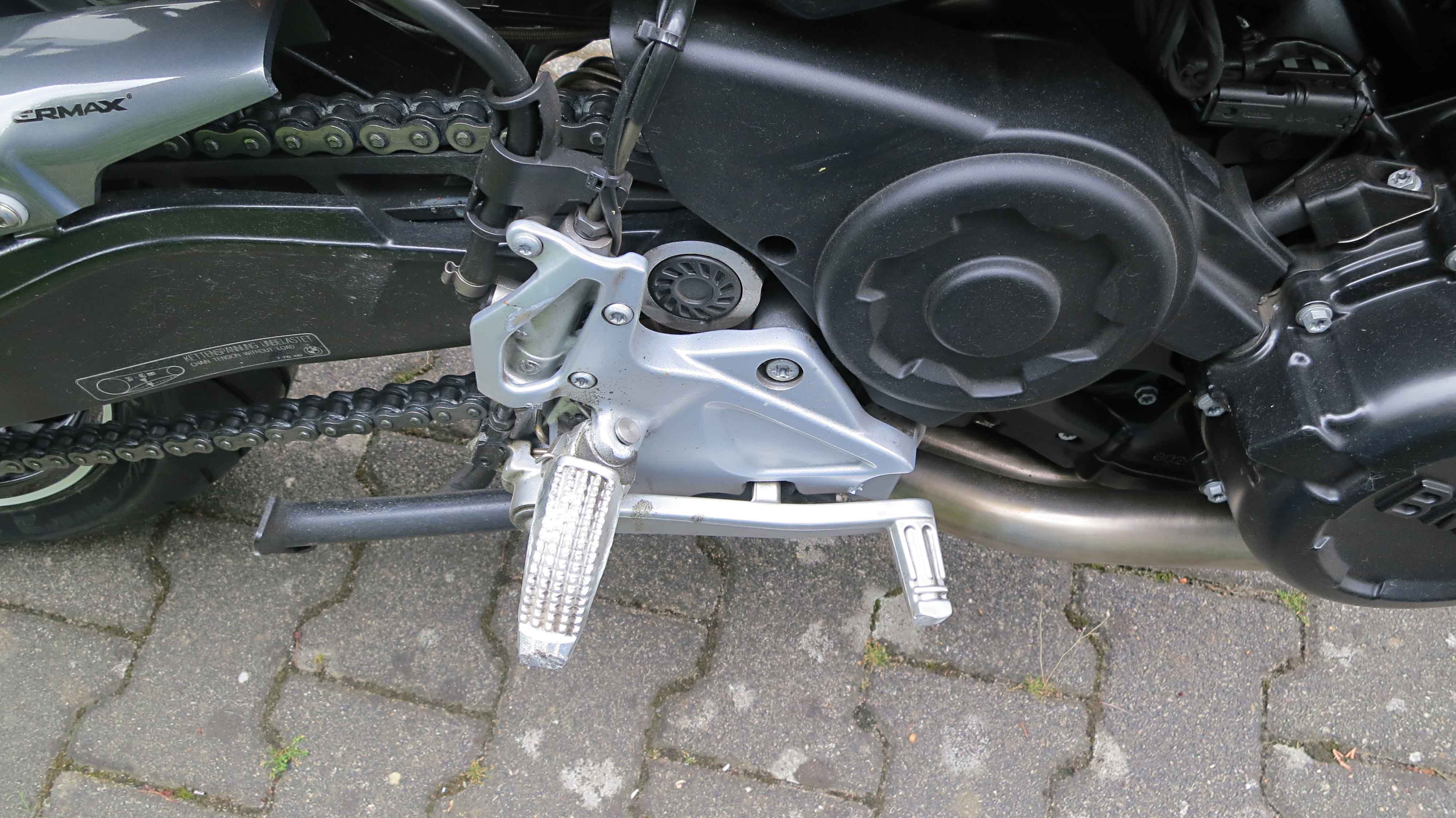 Die Schäden halten sich überraschender Weise in Grenzen. Lampe, Fußraste, Bremshebel, Windschild defekt. Hinzu kommen einige Kratzer.