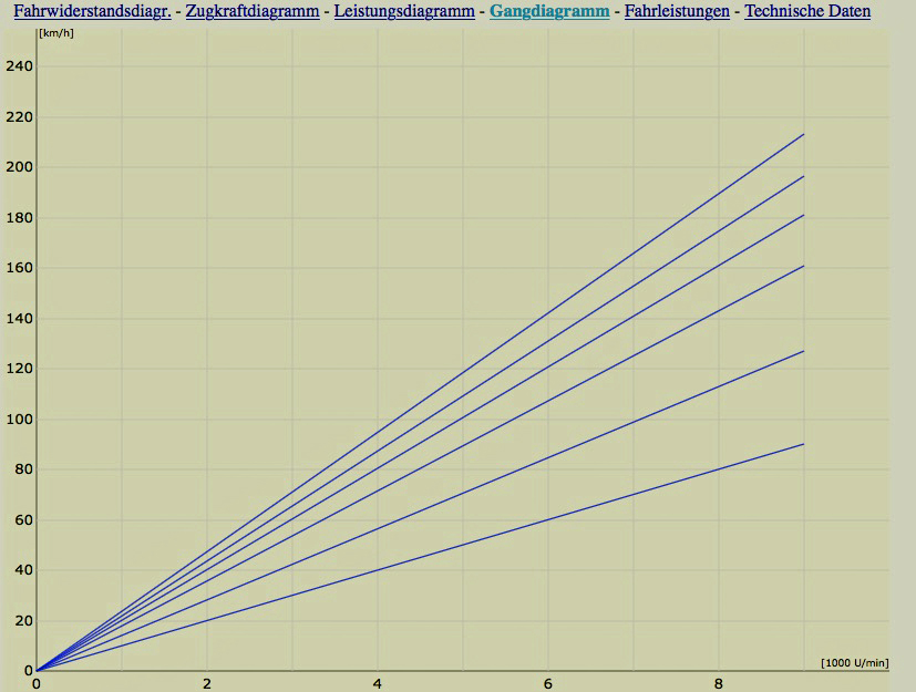 Somit ergibt sich als Geschwindigkeit bei 8000min-1im 6. Gang: