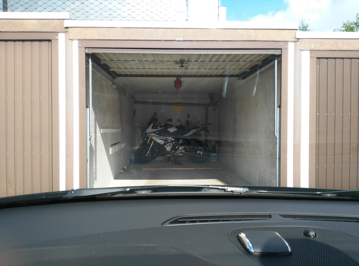 Wenn ich meine Moped hinten vor der Wand stehen habe schiebe ich das Auto die letzten Zentimeter von Hand bis an das Moped damit ich das Garagentor noch zu bekomme. Die Breite ist bei mir nicht das Problem, ich scheine eine etwas breitere Garage zu haben.