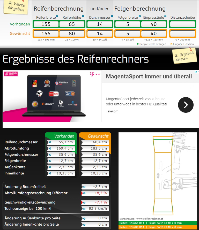 Und zur HU muss ich ja wieder 155/65er haben. Muss also für den einen Tag zur HU auf meine 155/65er Winterreifen wechseln.