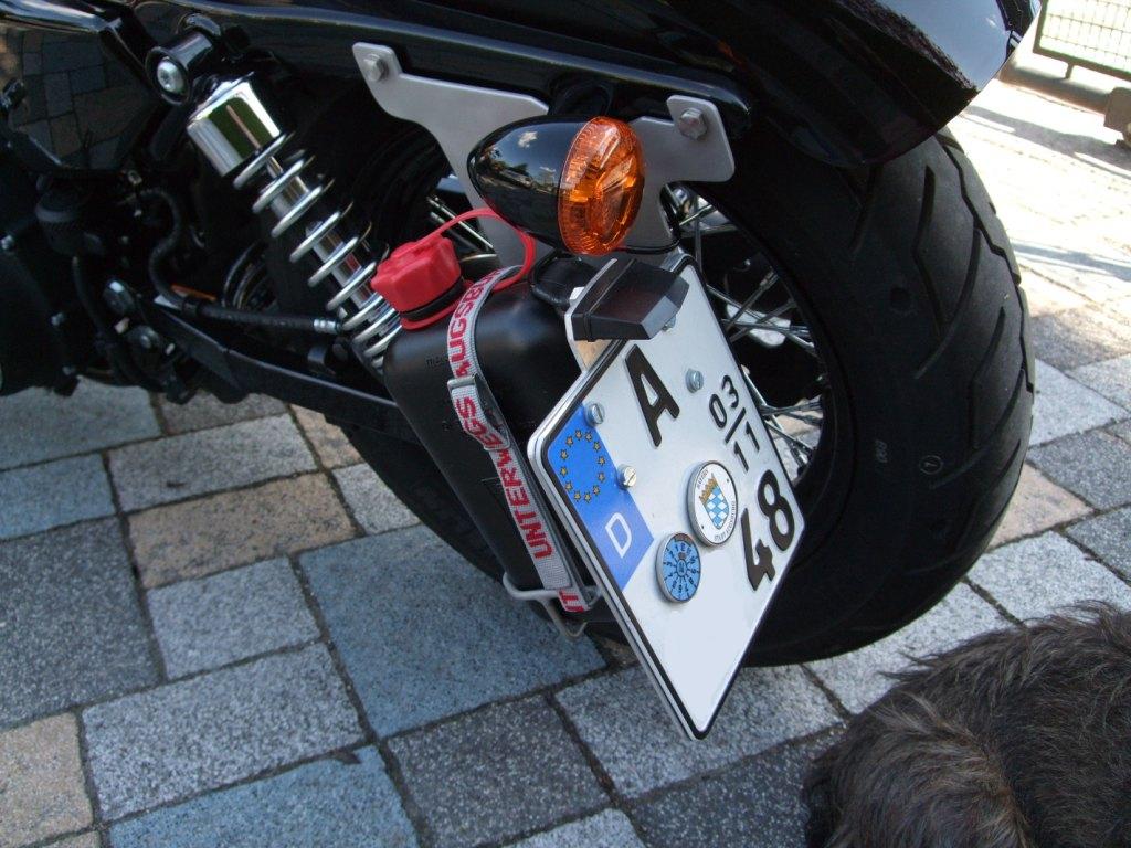Hi , hab mir neben meiner R auch ne 48er gegönnt, echt ne geile :mrgreen: Karre. Erste Umbauaktion war seitliches Kennzeichen mit Reservekanister :wink: .