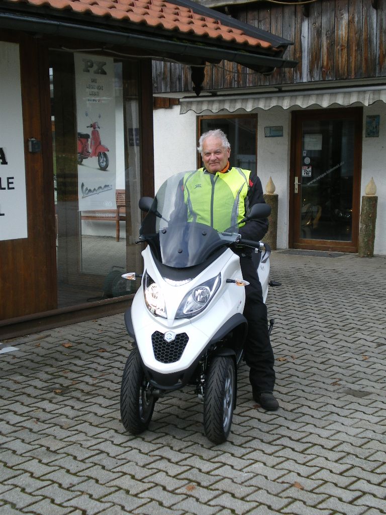 So hat er sich jetzt einen Piaggio MP3 gekauft.