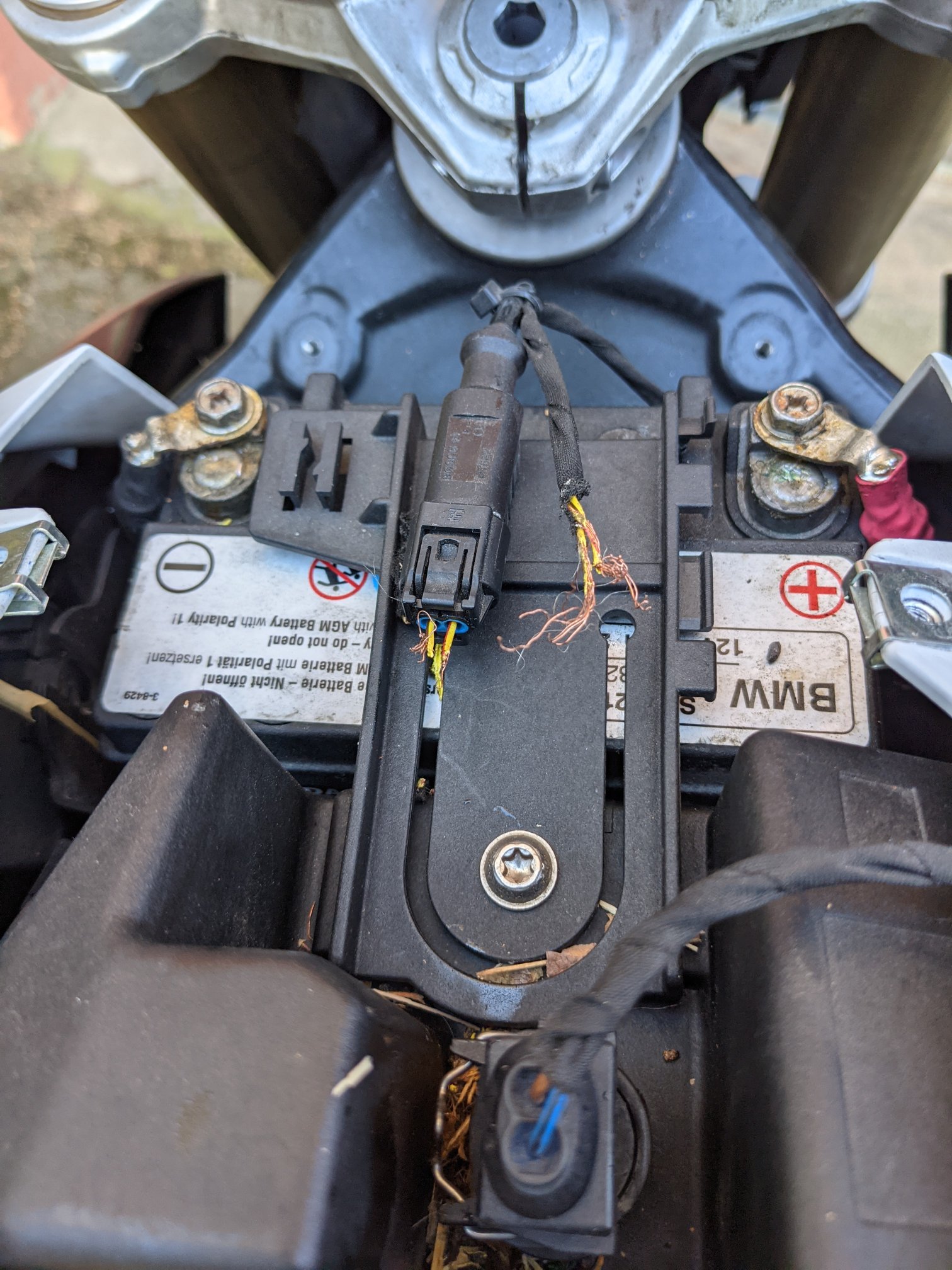 Nachdem ich in einem anderen Thread nach meinem ABS-Problem gefragt hatte und als wahrscheinlichste Lösung ein Batterieproblem rauskam, wollte ich die Batterie jetzt checken und staunte nicht schlecht.