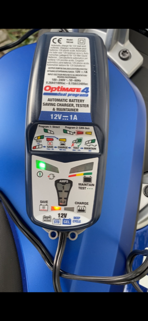 ich fahre eine F800R Baujahr 2013 und habe mir letzte Woche das Optimate 4 Ladegerät inkl. Adapter für die Bord-Steckdose gekauft. (https://www.louis.de/artikel/optimate-4 ... t/10037481).