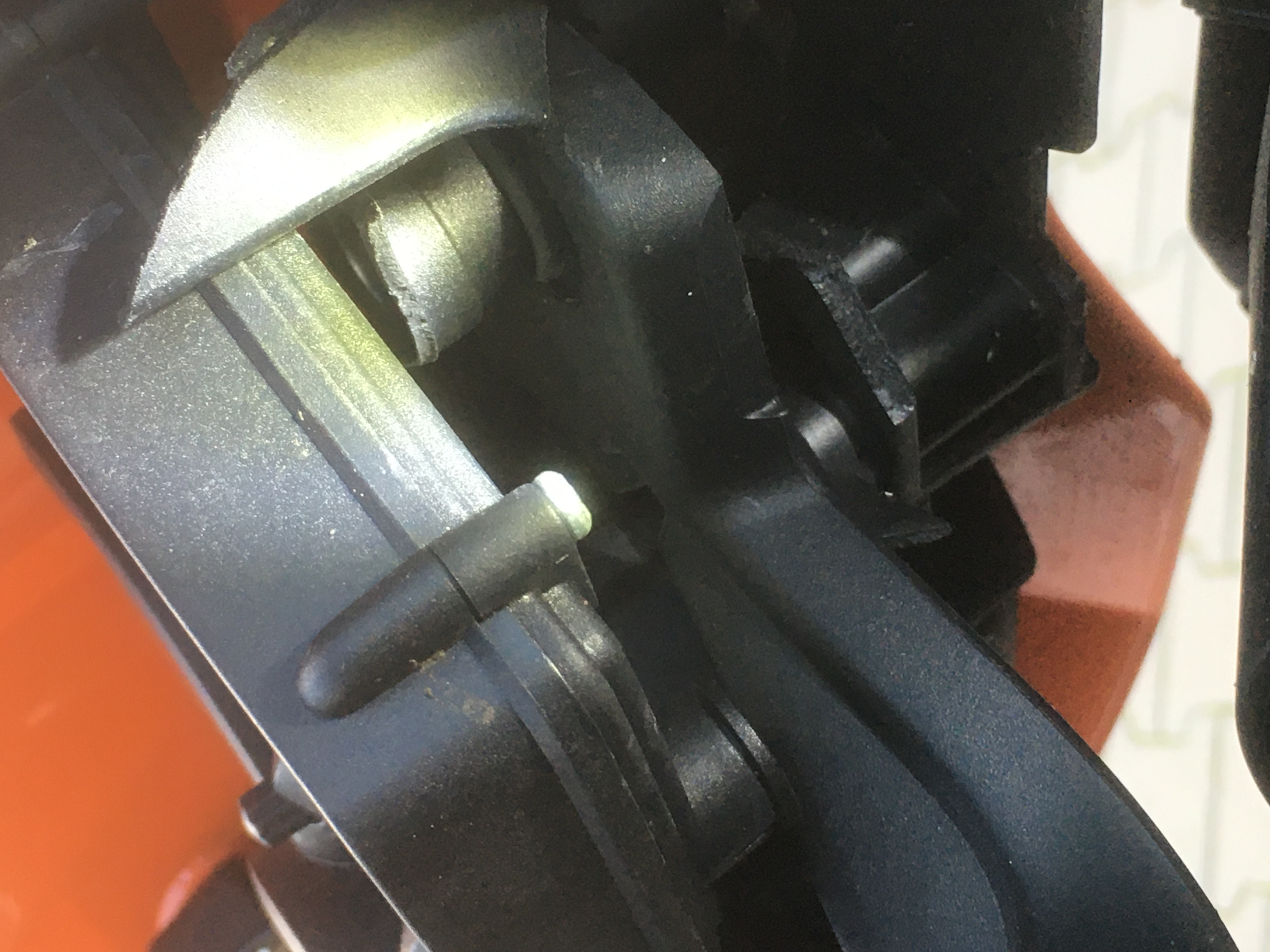 Man sieht's wirklich nicht gut, aber augenscheinlich scheint der Befestigungshalter auf der Bordcomputer-Seite ausgebrochen zu sein. Dann gibt's auf den Bildern noch ein recht spitzes Platikteil, das auch ausgebrochen aussieht? Insgesamt scheinst Du zumindest alle Teile beisammen zu haben, oder?