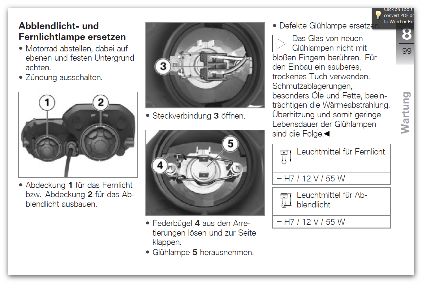Mein Abblendlicht ist kaputt.Nun hane ich mit der Bedienungsanleitung den Ersatz versucht.