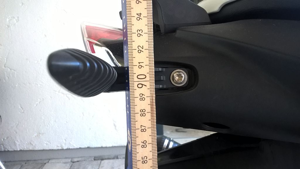 => 90,25cm Mitte Blinker bis Boden, den Meterstab im Winkel des Bikes angelehnt