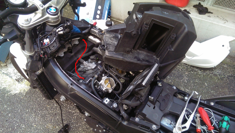 Da der Gaszug zu kurz war, habe ich den Gaszug der F800GS beim :D montieren lassen.