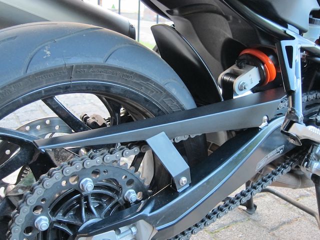 Der NUDA-Kettenschutz passt ansonsten perfekt an die Schwinge der R; allerdings muss ich dazusagen er ist gegenüber dem Orginal BMW-Kettenschutz schon sehr dünnwandig ausgeführt.