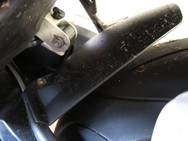 Leider hat meine Sozia bei der Schwarzwaldfahrt (teilweise im Regen) sowieso den Nachteil des modernen Designs eines nackten Hinterrads kennengelernt. An ihrem durchnässten Rücken.