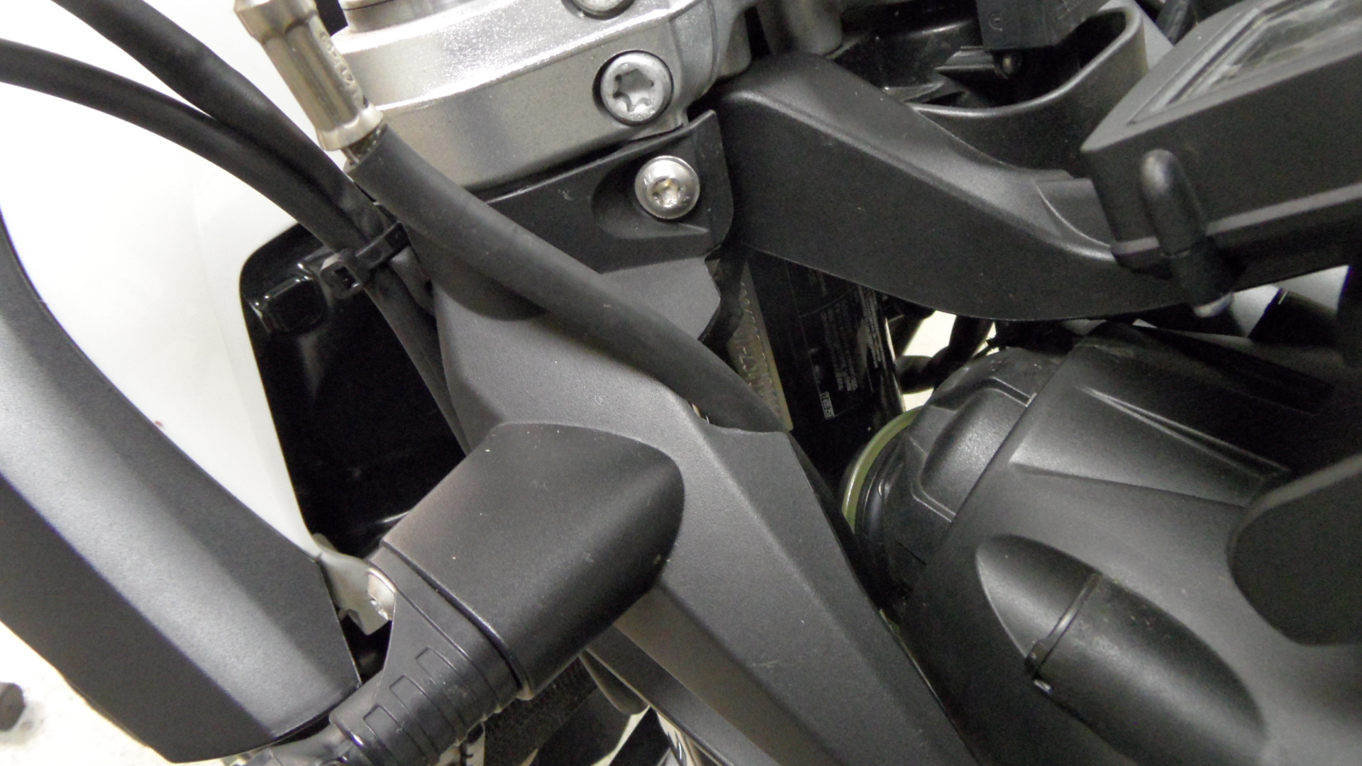 Hier sieht man, wie der Kupplungszug zwischen Instrumententräger und Gabelstandrohr hindurch laufen muss.