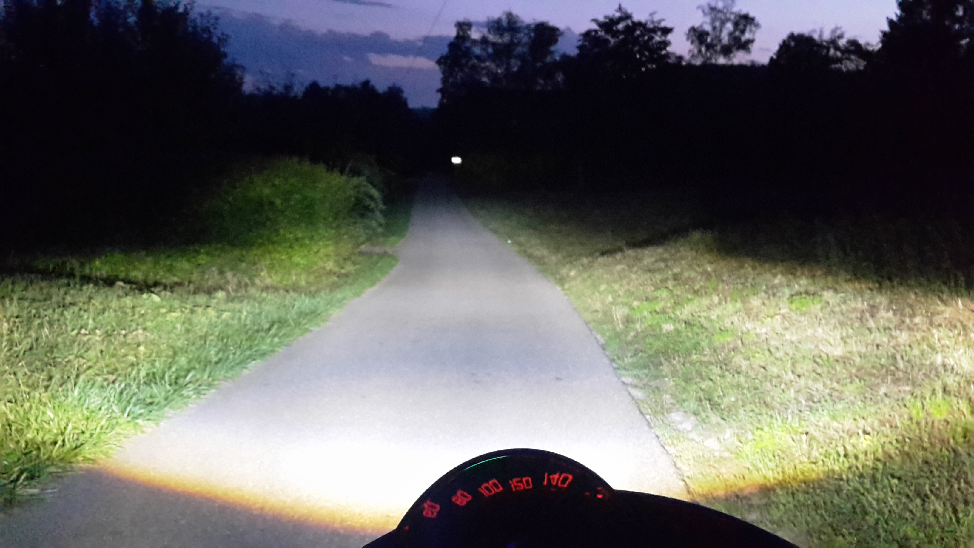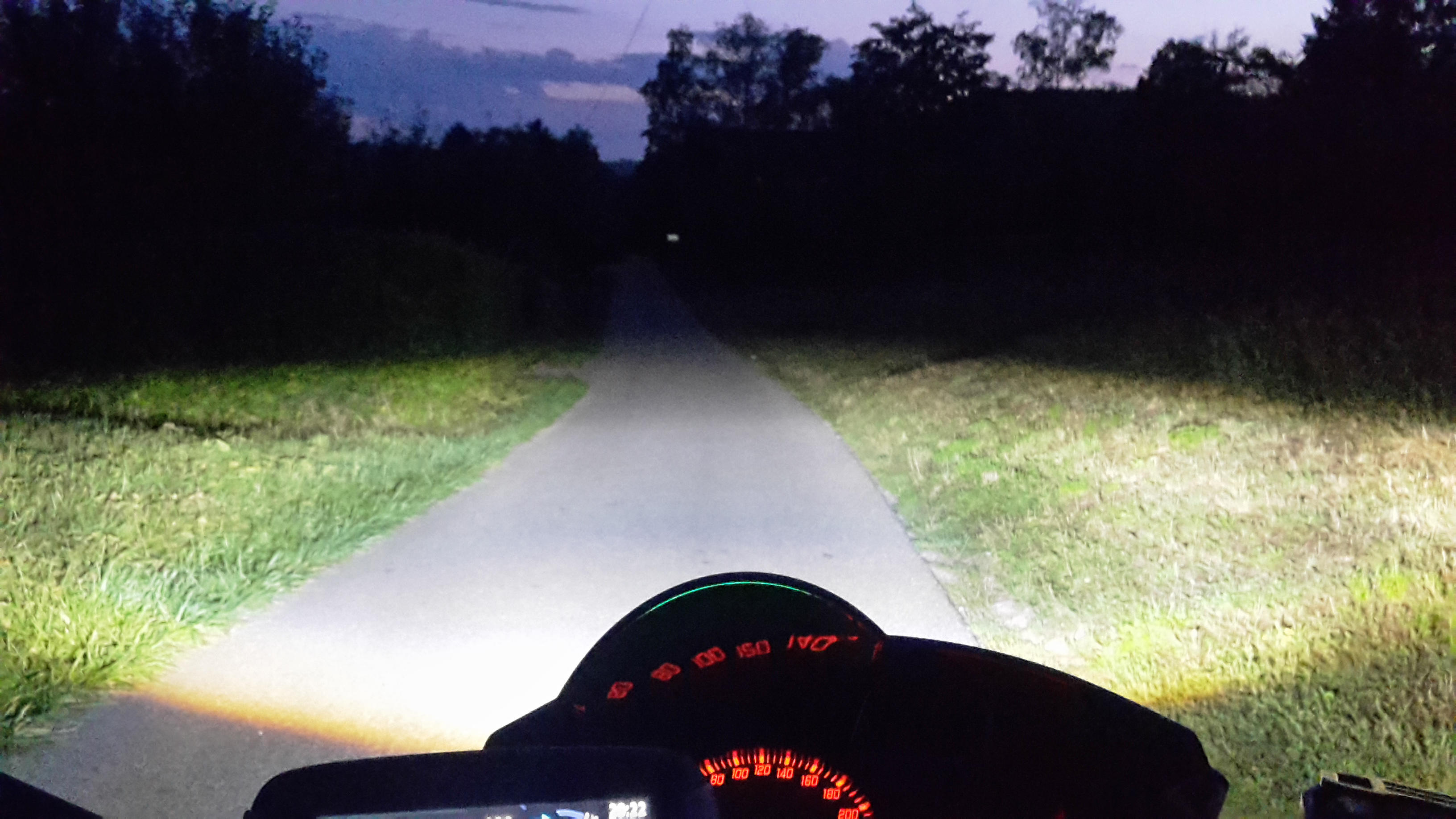 Davon abgesehen, haben mich ich die weiter oben geposteten Fotos überzeugt: das LED-Fernlicht ist ein Witz - und das Abblendlicht nicht um Welten besser als das serienmäßige H7-Licht.