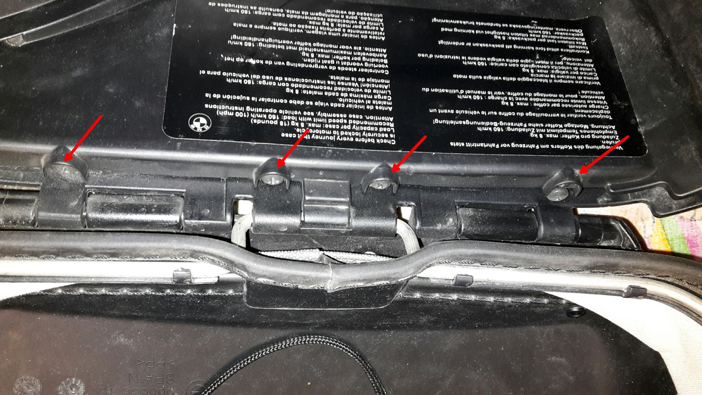 kann mir jemand erklären, wie man den Sportkoffer zerlegt. Konkret will ich die Schrauben lösen, die mit den roten Pfeilen markiert sind. Aber da muss erst der aufgeklappte Deckel aus dem Weg. Wie geht das?