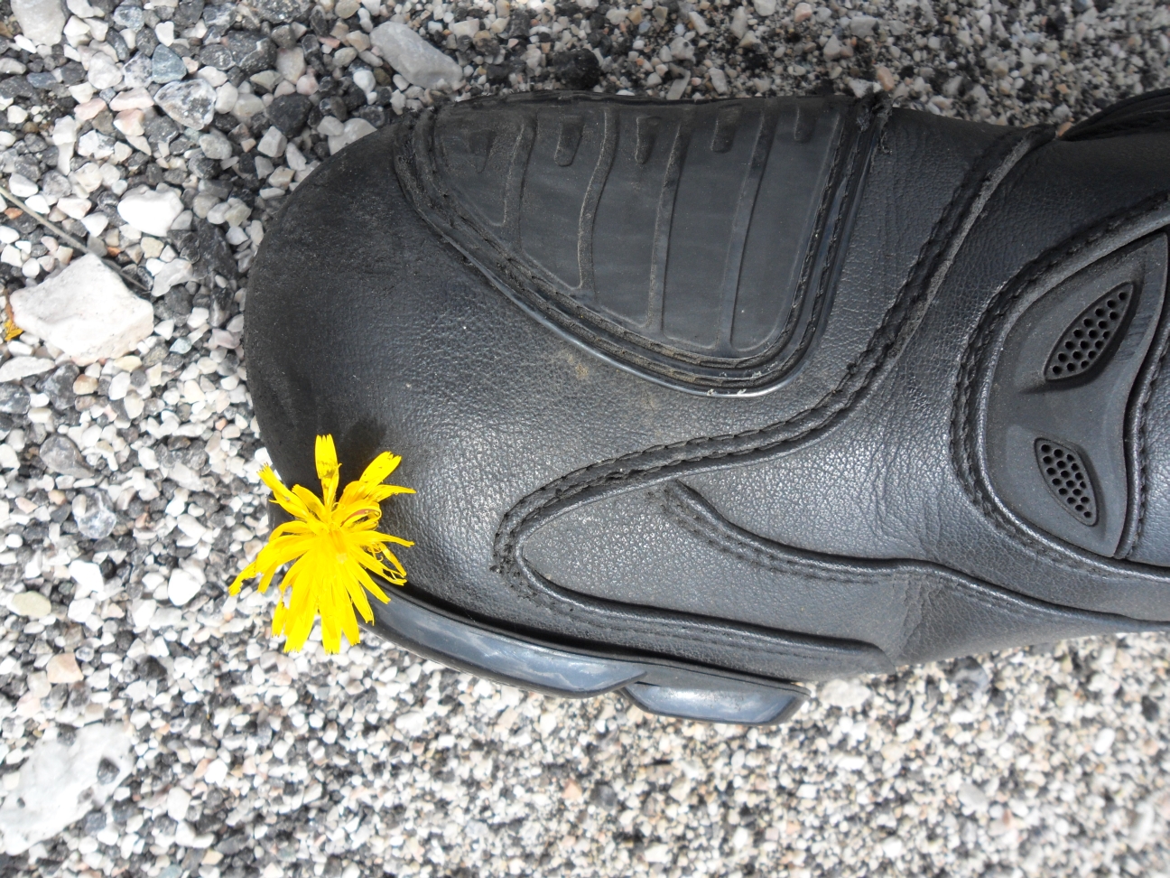 Das Blümchen :lol: ja ja..... war in den Dolos und ich hab's mir beim "Berge fotografieren" "eingefangen"... hätte ich mir das während der Fahrt eingefangen, müsstest dir echt Sorgen machen, ist ja der linke Schuh, dann müsste ich noch verdammt viel an meiner Kurvenlinie arbeiten :shock: