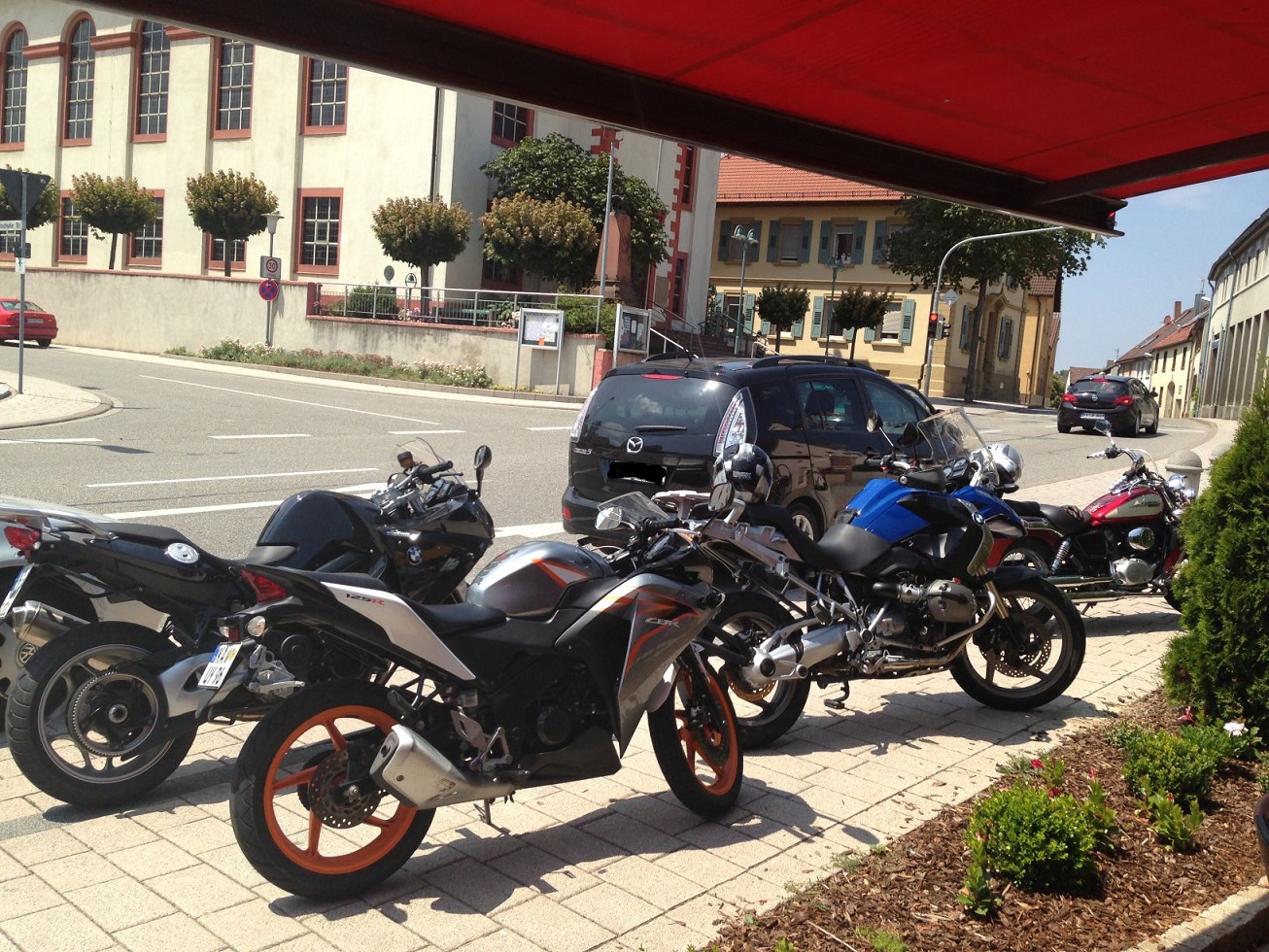 Hallo zusammen, habe mich hier neu angemeldet, bin schon ein älteres "Semester" (s. FJ 1100). Habe seit Mai 13 eine F 800 ST in Saphierschwarzmet. bin bis jetzt, obwohl (wegen Urlaub) erst ca 500 km gefahren, begeistert. Bin 63 Jahre alt, sind eine "Motorradfamilie", Sohn fährt eine 1200 GS, Enkel mit dem neuen A1 FS vorerst mal ein CBR 125. Das Bild zeigt eine "Kaffeepause" während eines 3-Generationen-Ausfluges.