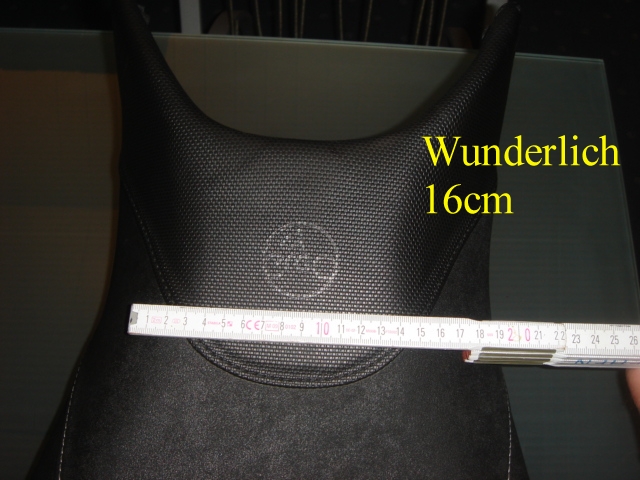 nach 2 Jahren Original-Sitzbank wechselte ich (1.83m 92kg brutto) zu Wunderlich. Bei beiden Modellen begannen nach ca.2 Stunden die 2 bekannten Po-Knochen zu schmerzen, nach 3 Stunden ging dann die Zappelei los.