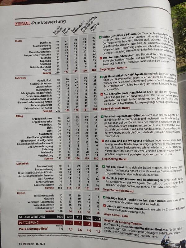 pschlosser1982 hat geschrieben:Ducati hat bzgl. Wartung mehr Punkte als BMW?! Ist das nicht der Testastretta-Motor mit Desmotronic? Falls ja, sollte die Ducati alleine deswegen schon 10 Punkte bzgl. Wartung verlieren...